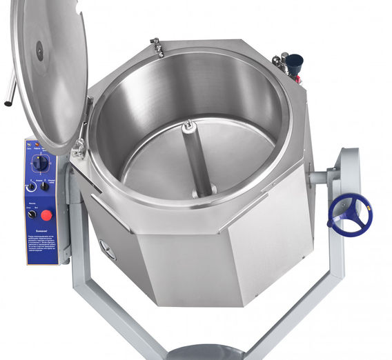 Elektrisk kokgryta (60 liter) med manuell tippning och omrörare, lämplig för tillagning av buljonger, soppor, såser, mousser, gröt, eller degar på storkök eller livsmedelsindustrin företag